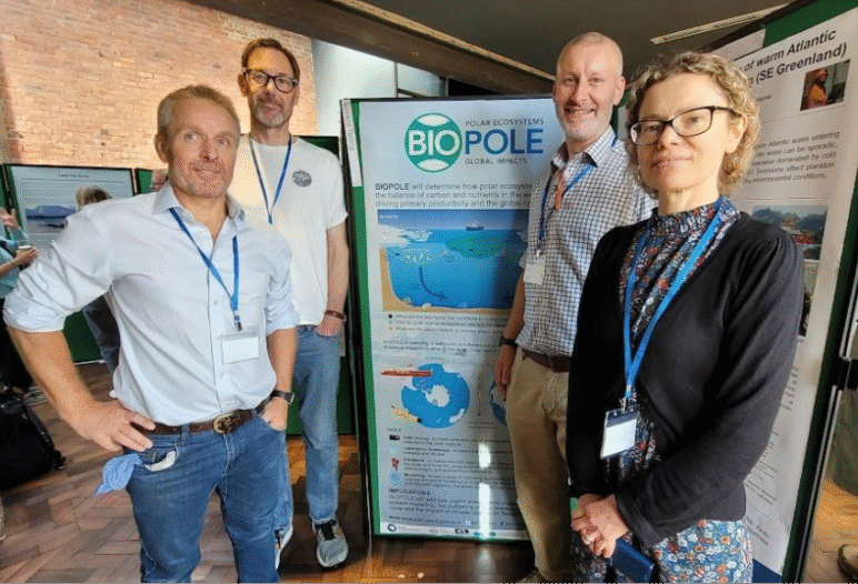 BIOPOLE researchers Kate Hendry, Geraint Tarling, Adrian Martin and Dan Mayor attended the UK Arctic Science Conference, held at Northumbria University in September 2025. The BIOPOLE attendees presented posters on their work on Davis Strait nutrient pathways (Adrian), glacial flour as a source of nutrients (Kate), stable isotope approaches to pelagic species interactions (Dan), and pelagic species complexes in East Greenland (Geraint). The BIOPOLE overview poster was also displayed.