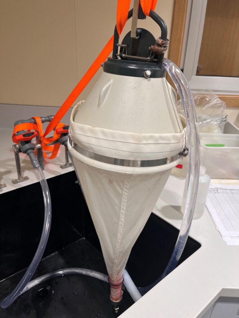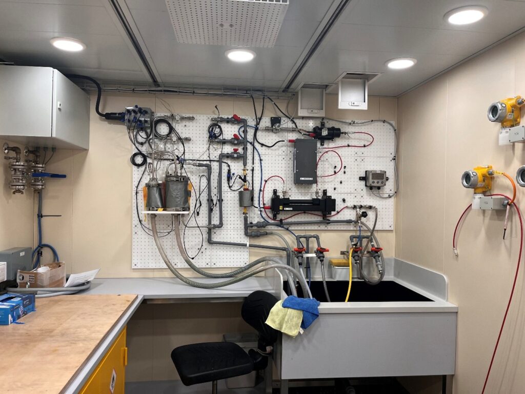 Figure 4: Underway sampling using mini bongo and planktoscope: onboard the SDA during SD049 to collect zooplankton samples the Main Lab for collecting zooplankton samples via a Mini Bongo net (left) and from the Uncontaminated Sea Water Laboratory for passing through a planktoscope (right).