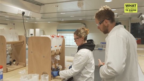 Figure 4: Rhi show’s Martin Stew (ITV correspondent) how to filter for POC and PIC. Martin and Mike Field (cameraman) joined the SD050 team, broadcasting live for 10 days, interviewing folk and documenting life on ship and at Rothera. Cred: ITV news