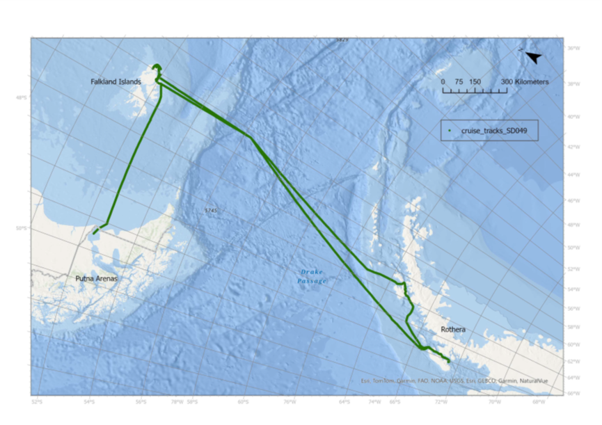 Fig. 5: Map of the cruise track undertaken on voyage SD049.