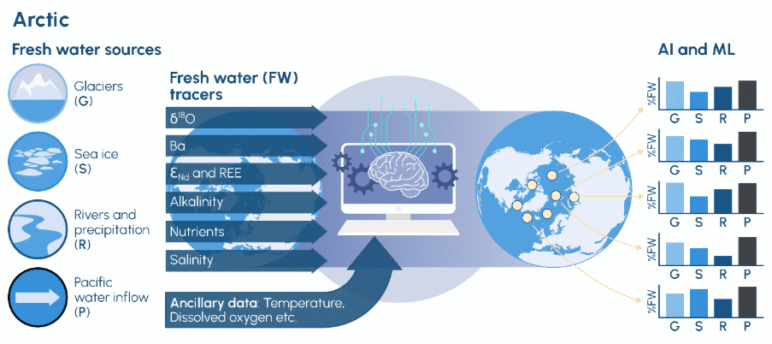 On 1st October, Project AISIT (AI for Stable Isotope Tracers) got underway to help increase our understanding of Arctic freshwater inputs. What AISIT will undertake is the generation of a standardised, machine-readable database of Arctic freshwater tracers and related environmental data. It will bring together data on stable oxygen isotopes (e.g. δ18O), other freshwater tracers like barium, and key nutrient data. By harmonising these data, AISIT will make Arctic freshwater data easier to access, compare, and use. Furthermore, AISIT will engage with the AI community to bench-test the database for further AI research. The project will initially focus on the freshwater tracer and associated environmental data collected by BIOPOLE, before expanding to integrate datasets from the other data sources.