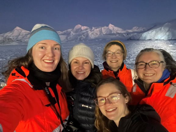 Figure 1: Southern Ocean BIOPOLE III SD049 members (L-R) Siobhán Foden (BAS), Nadine Johnston (BAS), Sammie Buzzard (CPOM), Gabi Stowasser (BAS) and Tracey Dornan (BAS)